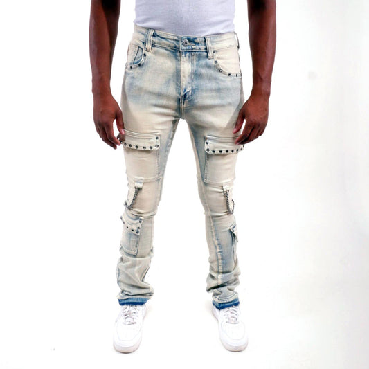 Silver studded muti cargo flare denim pant