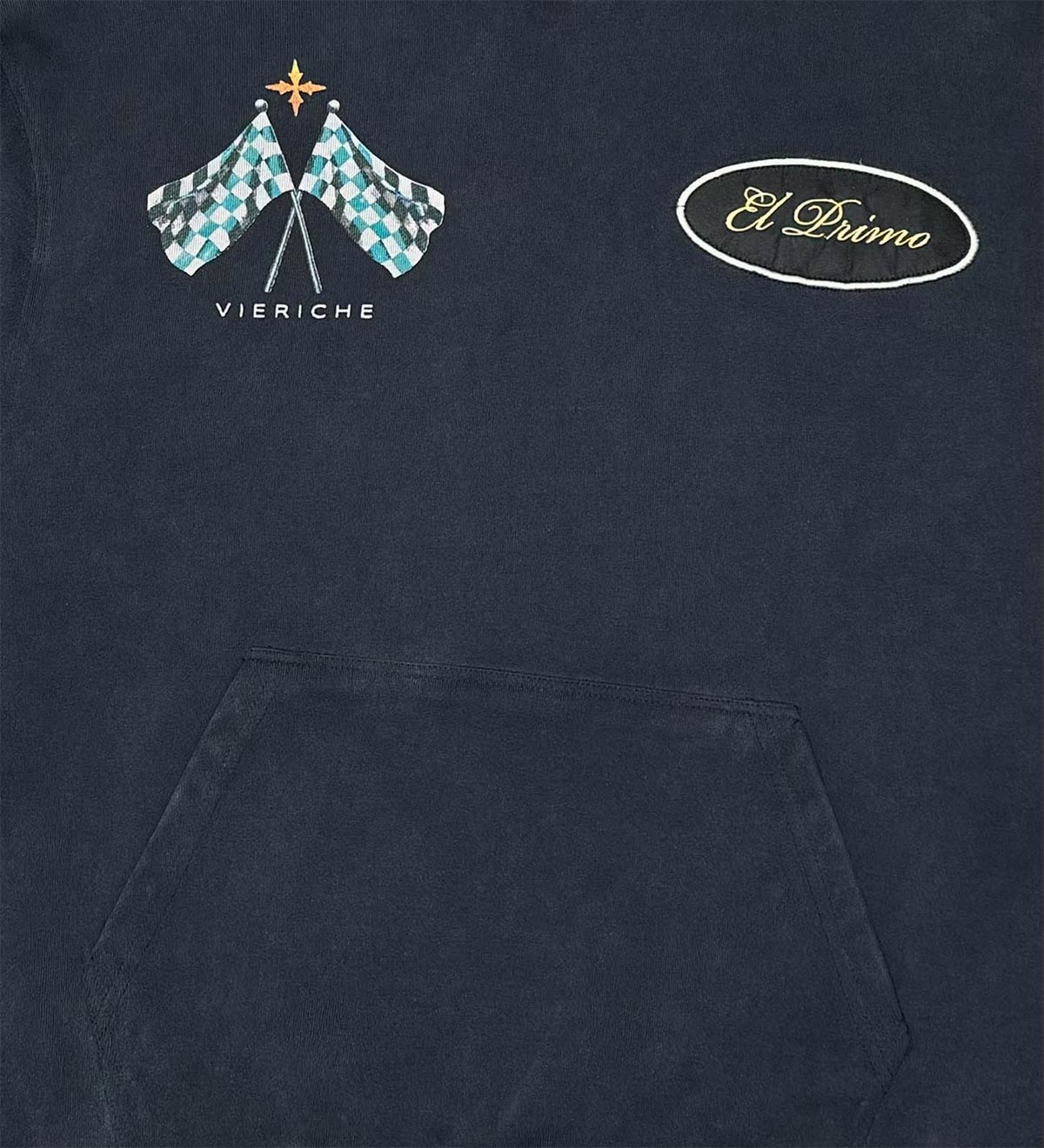 100% cotton heavyweight fine-knit french terry hooded sweatshirt with garment wash. printed insignia on front chest, sleeves and back, and embroidery patch on left chest.