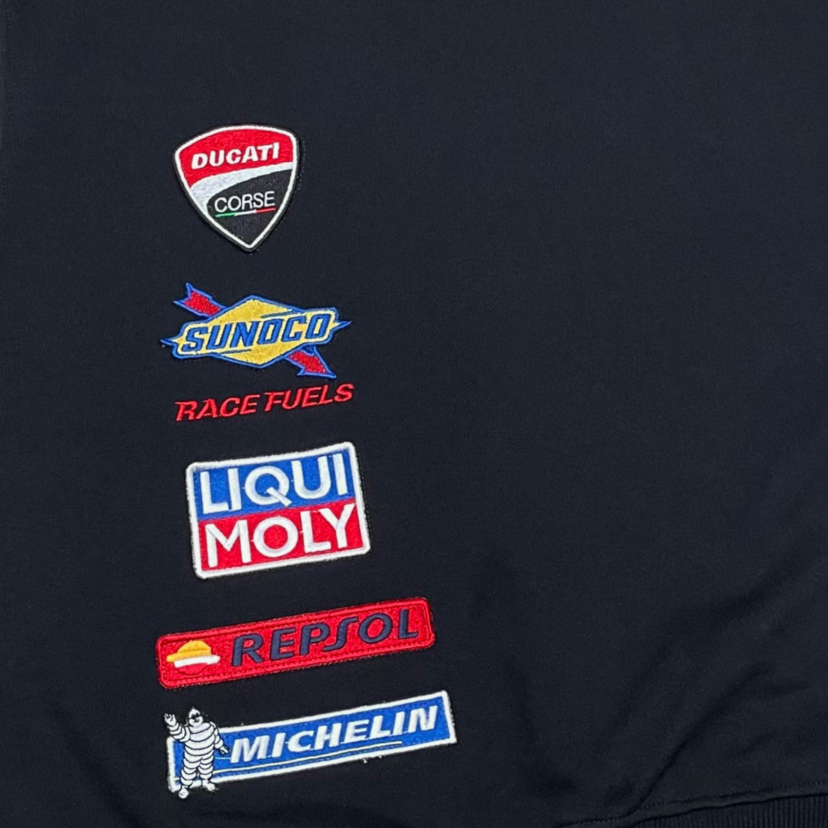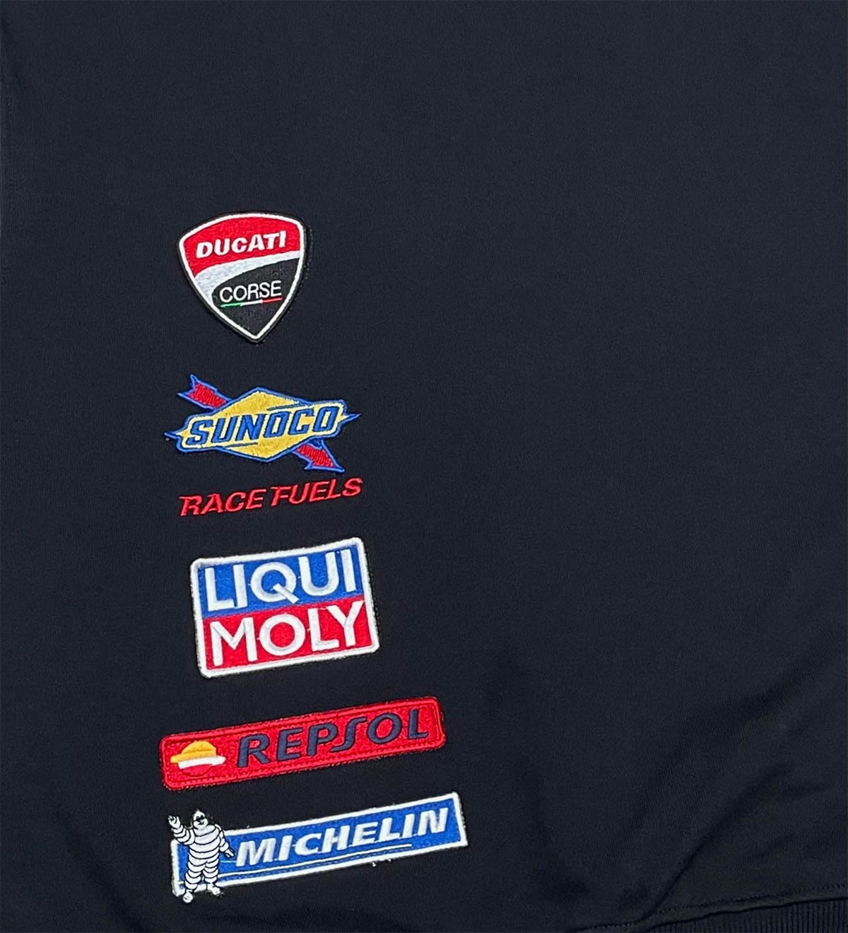 Fine knit 100% cotton french terry hooded sweatshirt with printed graphics on chest and sleeve, and zippered double entry kangaroo pocket.