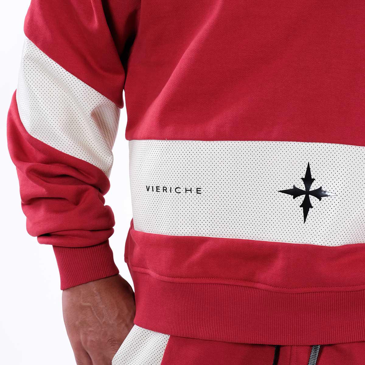 100% Heavyweight cotton french terry sweatshirt with perforated vegan leather panels, printed graphics and embroidery appliques.