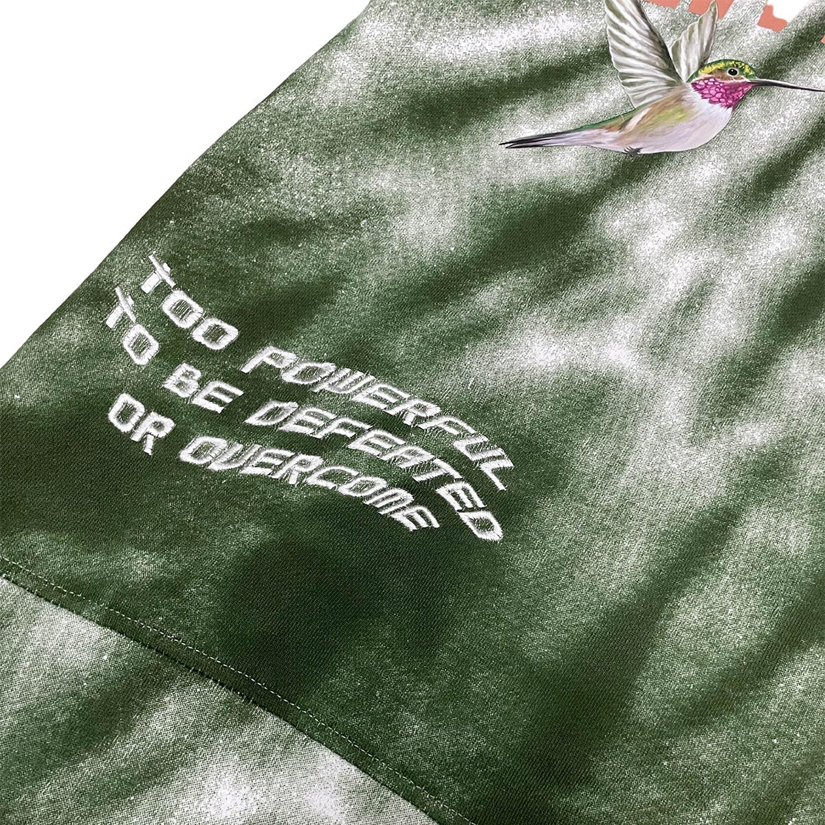 100% fine knit cotton french terry crew neck sweater with printed graphic on front chest and embroidery detail at bottom front panel.
