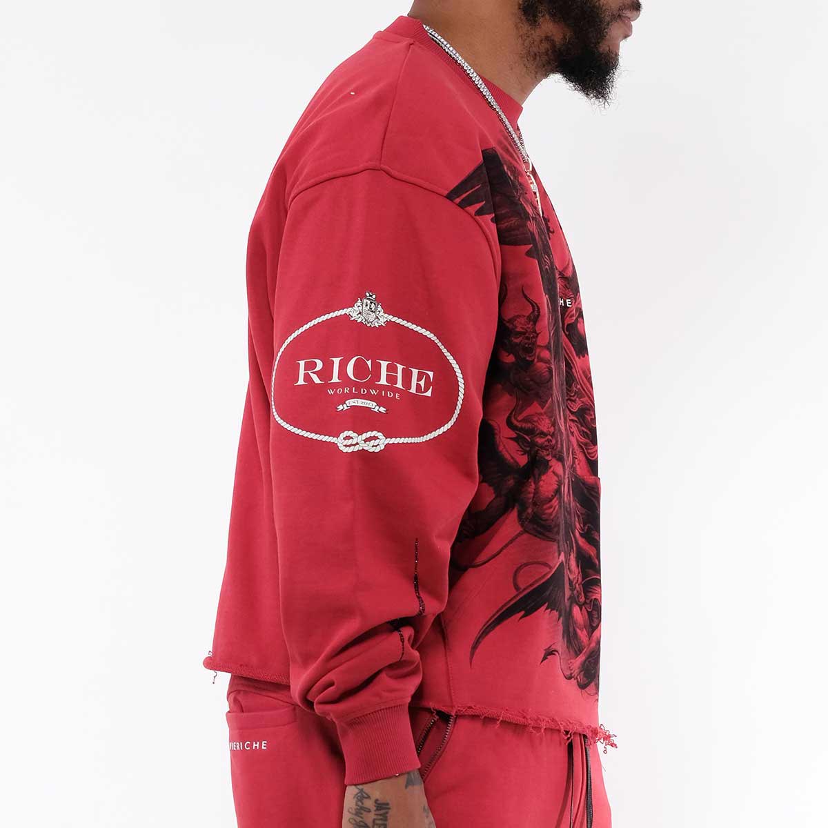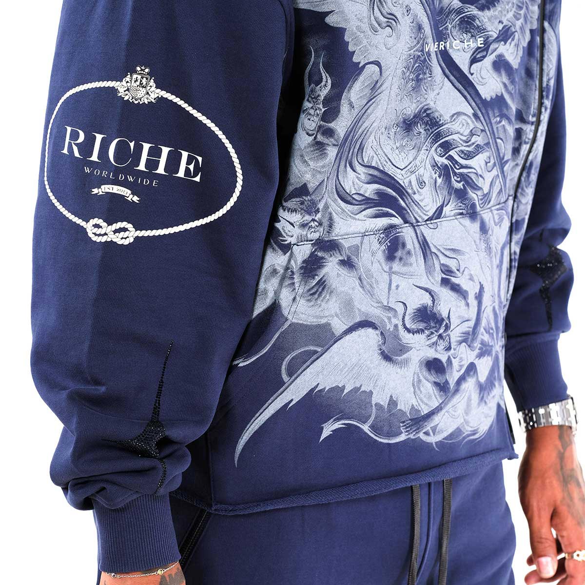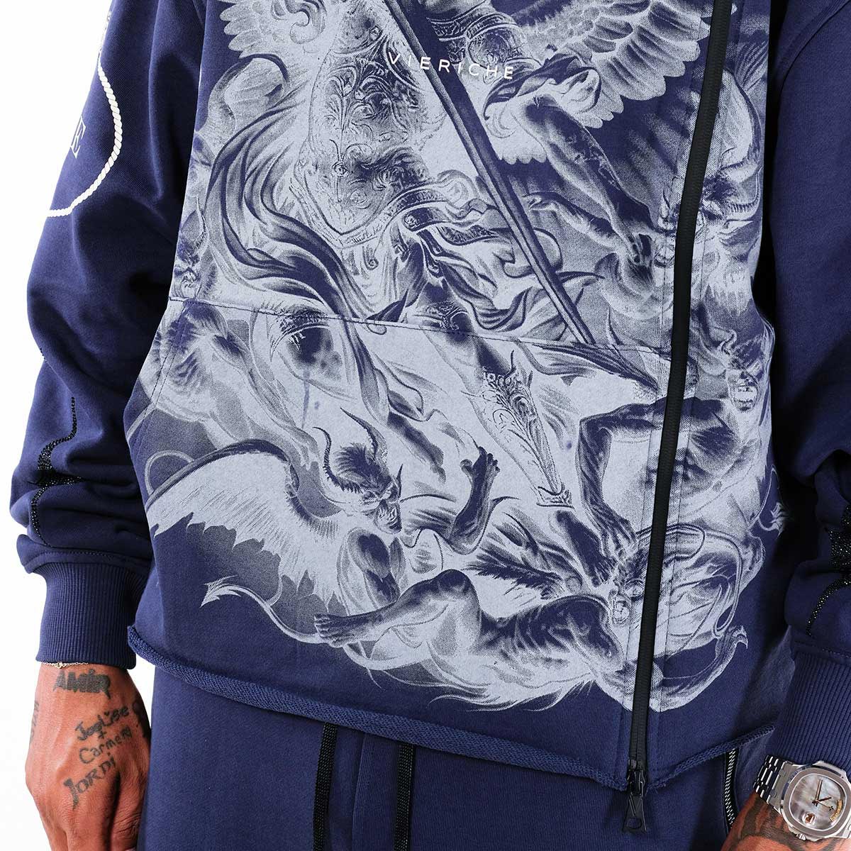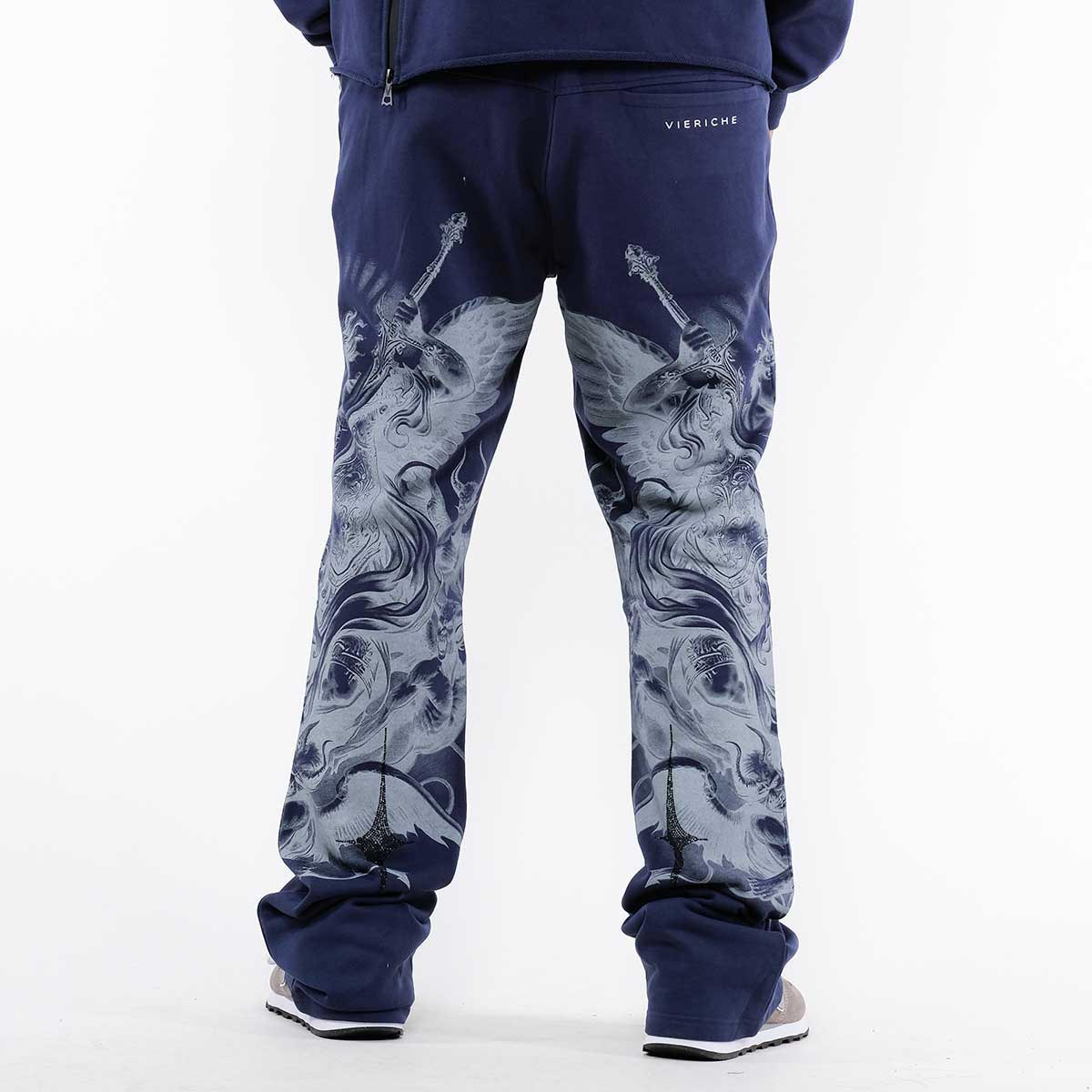 100% Heavyweight cotton french terry sweatshirt (interchangeable) with printed angel graphics on front, printed logo on sleeve, and full body side zipper to mix and match. 100% Heavyweight cotton french terry sweat pants with printed angel graphics on full legs, zippered pockets, adjustable snap closure at bottom cuff, and drawcord pullers.
