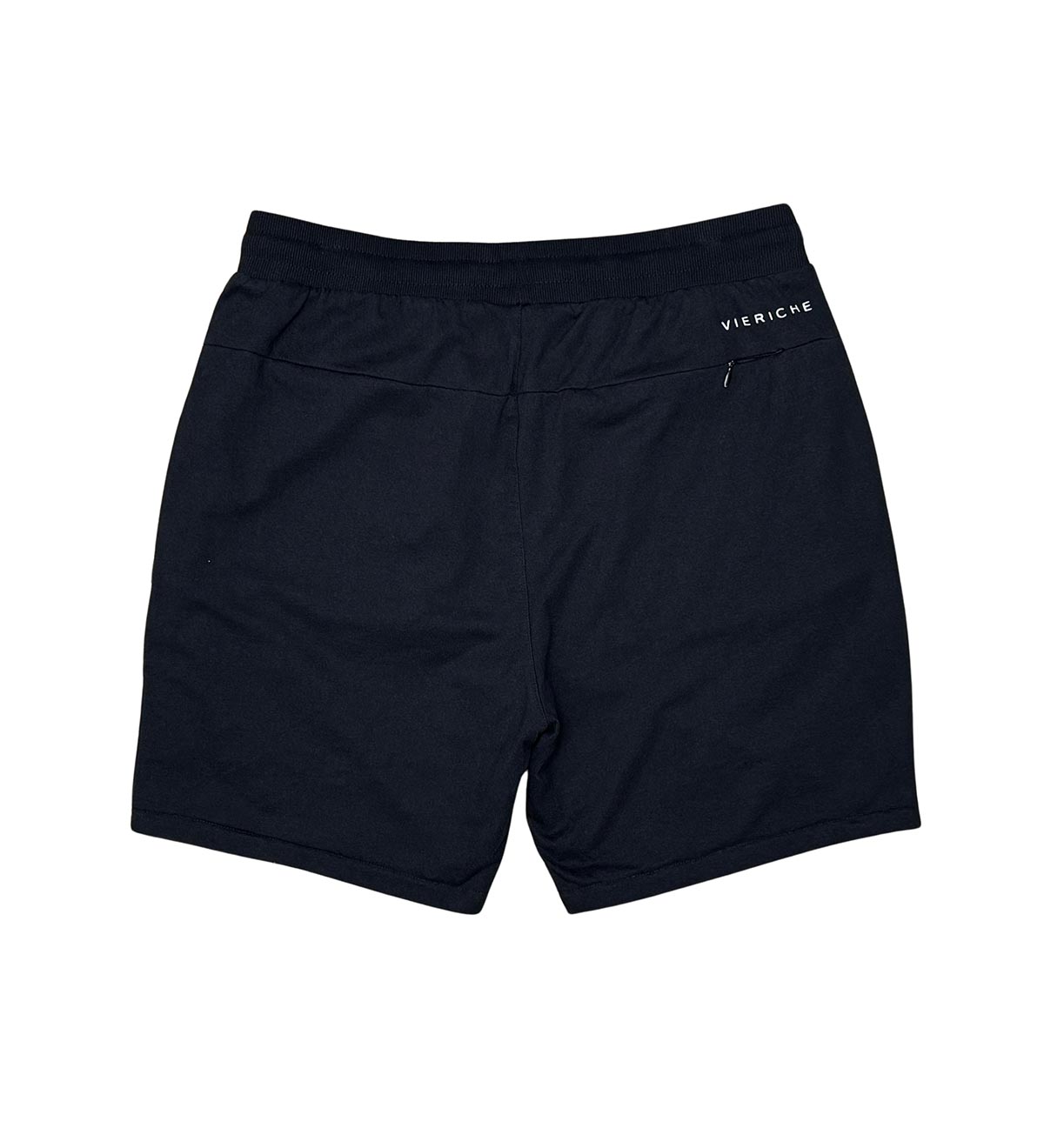 100% fine knit heavyweight cotton reversible shorts with zippered pockets and draw cord pullers.