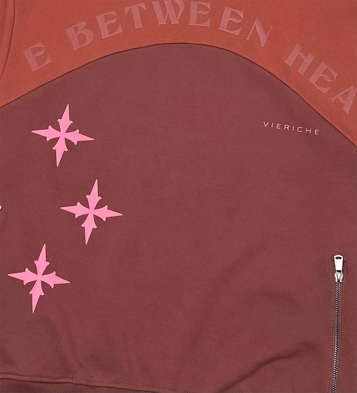 100% fine knit heavyweight cotton french terry hooded sweatshirt with self-fabric contrast paneling and printed insignia on the front and hood.